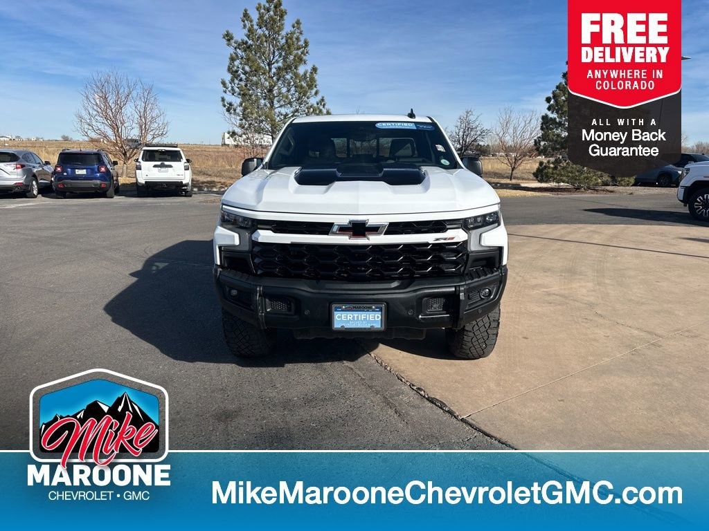 Clean CARFAX. CARFAX One-Owner. Certified. Summit White 2025 Chevrolet Silverado 1500 ZR2 4WD 10-Speed Automatic 3.0L I6 FREE DELIVERY ANYWHERE IN COLORADO, CHEVROLET CERTIFIED, NAVIGATION, 4 WHEEL DRIVE, HEATED FRONT SEATS, LOCAL TRADE IN, PRICED TO SELL!!!, COME TEST DRIVE!, SET YOUR TEST DRIVE APPOINTMENT TODAY, 10-Speed Automatic, 4WD, Jet Black/Graystone Leather.