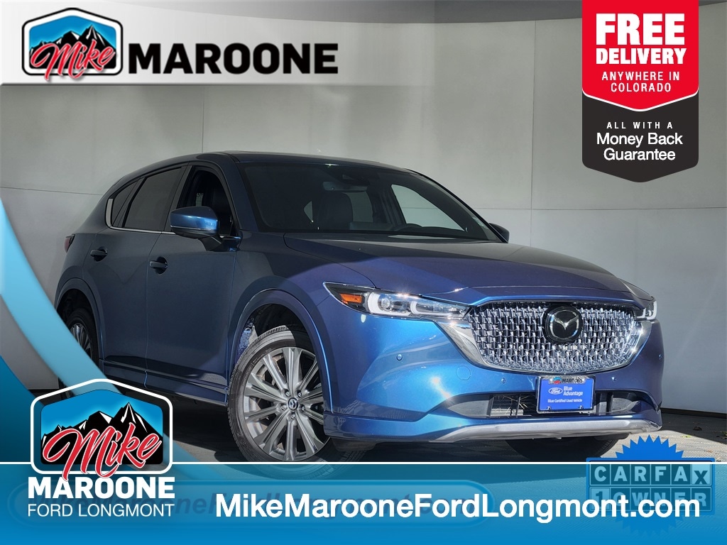 Recent Arrival at Mike Maroone Ford! Clean CARFAX. CARFAX One-Owner. FREE DELIVERY ANYWHERE IN COLORADO, BLUE CERTIFIED, ALL WHEEL DRIVE, REMOTE START, KEYLESS IGNITION, BLIND SPOT MONITOR, APPLE CARPLAY/ANDROID AUTO, BLUETOOTH/HANDS FREE, LOCAL TRADE, PRICED TO SELL!!!. Odometer is 6147 miles below market average! Eternal Blue Mica 2024 Mazda CX-5 2.5 Turbo Signature 4D Sport Utility 2.5L I4 6-Speed Automatic AWD