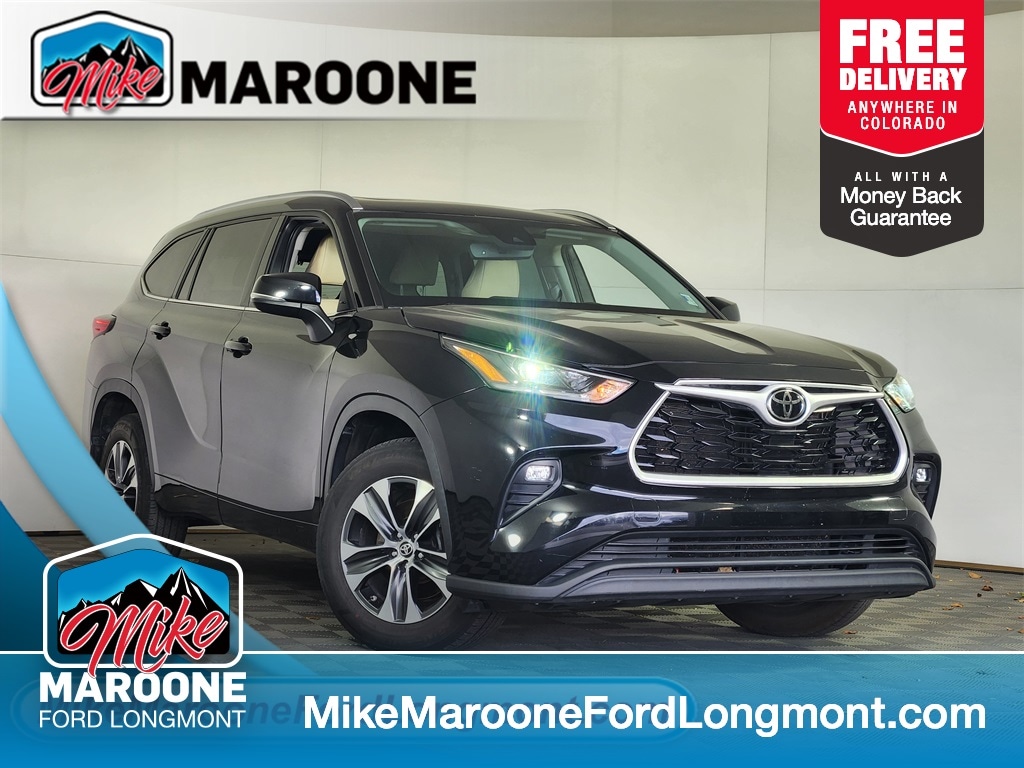 Recent Arrival at Mike Maroone Ford! Clean CARFAX. FREE DELIVERY ANYWHERE IN COLORADO, BLUE CERTIFIED, 4 WHEEL DRIVE, BLUETOOTH/HANDS FREE, REAR BACKUP CAMERA, LOCAL TRADE, All-Weather Floor/Cargo Liner, Cargo Cover, Door Edge Guards, Preferred Owners Portfolio, Rear Bumper Applique Clear. Odometer is 13073 miles below market average! Black 2021 Toyota Highlander XLE 4D Sport Utility 3.5L V6 DOHC 8-Speed Automatic AWD