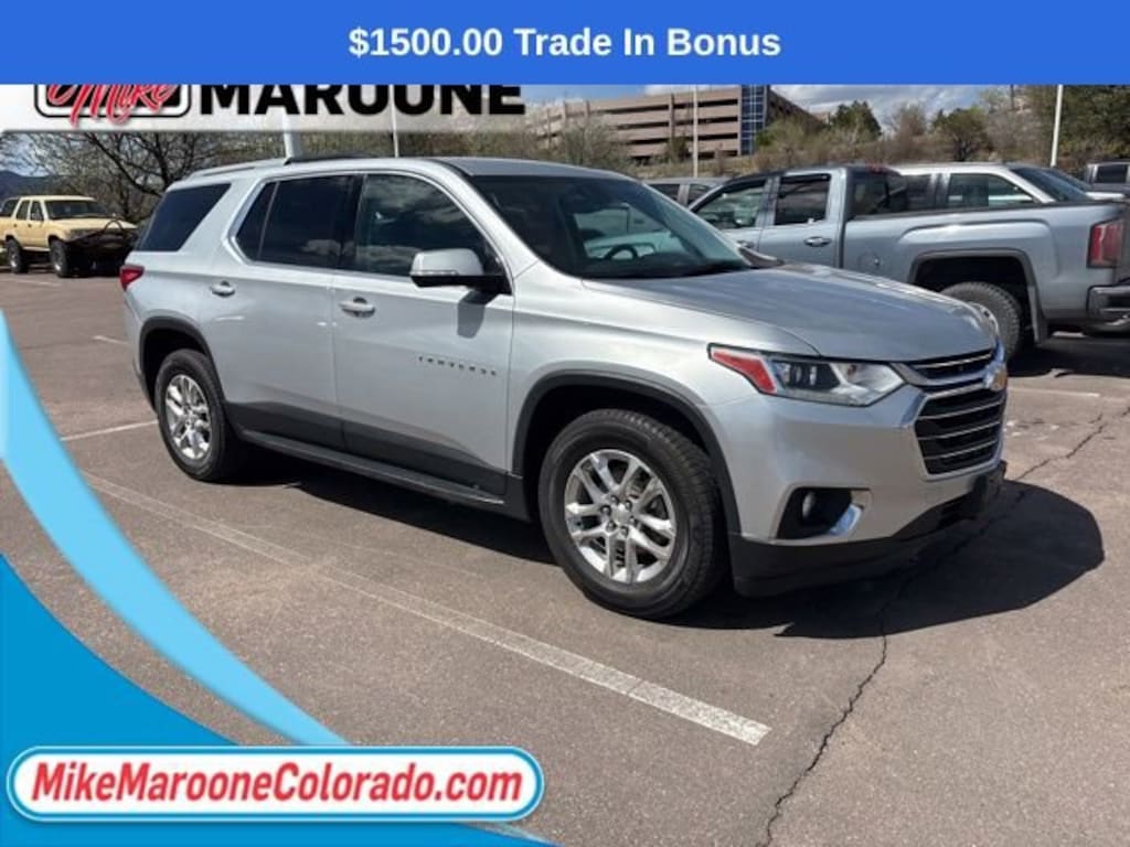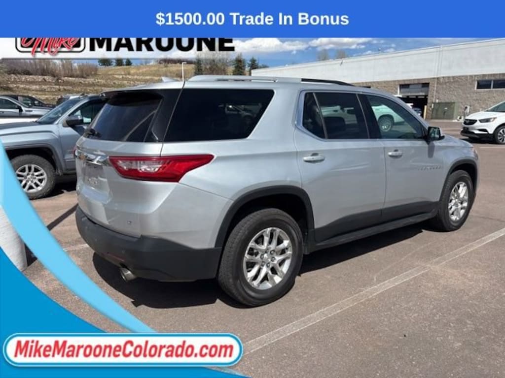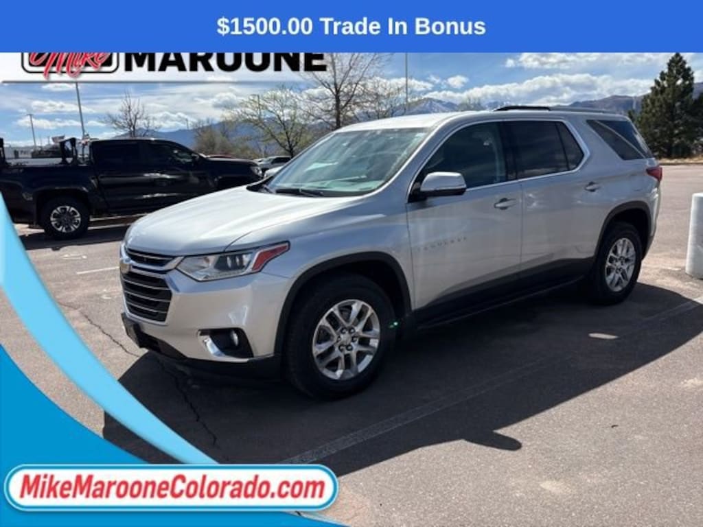 Recent Arrival! 2018 Chevrolet Traverse LT Cloth w/1LT 4D Sport Utility 17/25 City/Highway MPG CARFAX One-Owner. Awards:* JD Power Automotive Performance, Execution and Layout (APEAL) Study * 2018 KBB.com Best Family Cars * 2018 KBB.com 10 Most Affordable 3-Row Vehicles * 2018 KBB.com 10 Most Awarded Brands FREE DELIVERY ANYWHERE IN COLORADO **. 3.6L V6 SIDI VVT 9-Speed Automatic AWDThis Traverse comes with the FULL Mike Maroone a 60-Day 3000 Mileage Powertrain Warranty. We will review our technician’s vehicle inspection report with you before purchase. Our intention is to provide you a completely transparent buying experience. At Mike Maroone our used vehicles are Safety Checked, Warrantied, CarFax, and if you don’t like it ... Bring it back! For more information or vehicles like it, stop by Mike Maroone North today. We are just north of the Chapel Hills mall behind Walmart in the Chapel Hills Auto Mall.