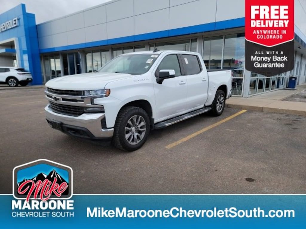 COME SEE THIS BEAUTIFUL 2020 Chevrolet Silverado 1500 LT AT MIKE MAROONE CHEVROLET SOUTH 230 N ACADEMY BLVD COLORADO SPRINGS CO, 3 DAY 150 MILE MONEY BACK GUARANTEE**, FREE DELIVERY ANYWHERE IN COLORADO**, 60 DAY POWERTRAIN WARRANTY**, 1 FREE MONTH ONSTAR (IF EQUIPPED)**, 3 FREE MONTHS XM RADIO (IF EQUIPPED)**, 3RD ROW SEATING**, 4 WHEEL DRIVE**, 5.3L V8 ENGINE**, 8 COLOR TOUCHSCREEN**, APPLE CARPLAY**, ANDROID AUTO**, AIR CONDITIONING**, ALLOY WHEELS**, BLUETOOTH - HANDS FREE**, FRESH OIL & FILTER CHANGE**, FRONT & REAR BRAKES**, HEATED SEATS**, HEATED STEERING WHEEL**, PASSIVE ENTRY SYSTEM**, KEYLESS OPEN**, KEYLESS START**, KEYLESS ENTRY**, POWER HEATED OUTSIDE MIRRORS**, CRUISE CONTROL**, POWER WINDOWS**, POWER LOCKS**, POWER SEAT**, REAR BACK UP CAMERA**, REAR CROSS TRAFFIC ALERT**, REMOTE VEHICLE START**, RUNNING BOARDS**, SERVICE RECORDS AVAILABLE**, STEERING WHEEL AUDIO CONTROLS**, TOW PACKAGE**, TRAILERING EQUIPMENT**, BEDLINER**. 4WD Certification Program Details: This 2020 Chevrolet Silverado 1500 LT also comes with the FULL Mike Maroone 60-Day warranty. We will review the technician's vehicle inspection report with you before purchase. Our intention is to provide you a completely transparent buying experience. At Mike Maroone our used vehicles are Safety Checked, Warrantied, CARFAX, and if you don't like it ... Bring it back! All of our new and used vehicles come with the Mike Maroone Preferred Owner Advantages listed below: - MARKET BASED PRICING - 3 DAY/150 MILE MONEY BACK GUARANTEE - FREE LOANERS FOR SERVICE GUESTS WHO SET AN ONLINE APPOINTMENT - 12 MONTH/12K MILE SERVICE/COLLISION GUARANTEE - 60 DAY LIMITED POWERTRAIN PRE-OWNED VEHICLE WARRANTY - MILITARY DEPLOYMENT BUYBACK GUARANTEE - FREE DELIVERY ANYWHERE IN COLORADO For more information or vehicles like it, stop by Mike Maroone South today. We are just south of the Citadel Mall on the corner of Academy and Bijou.
