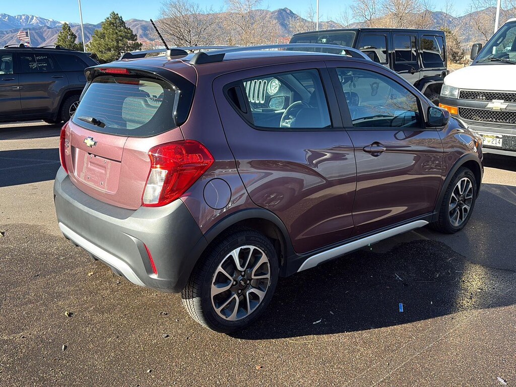 This 2021 Chevrolet Spark ACTIV, has a Passion Fruit exterior and Jet Black/Dark Anderson Silver Metallic interior color with only 53,890 miles. Stock Number PN737032. You can connect with us by calling (719) 249-2703. OTHER NOTABLE FEATURES AND OPTIONS YOU SHOULD KNOW ABOUT: Preferred Equipment Group 1SH15" Aluminum WheelsPower Windows with Driver Express Up/downPower Door Locks with Automatic Emergency UnlockBlack Rocker MoldingsDoor Sill Plate CoverRemote Panic AlarmBody-Color Manual Folding Heated Outside MirrorsTouring SuspensionCustom ACTIV Grille3.76 Final Drive Axle RatioElectronic Cruise Control with Set and Resume SpeedRemote Keyless Entry with Panic Alarm ButtonContinuously Variable TransmissionLeather-Wrapped Steering Wheel with Silver AccentsSiriusXM RadioSteering Wheel Mounted Controls6-Speaker Audio System FeatureContent Theft Alarm Theft Deterrent SystemBlack Front and Rear BumpersPainted Roof-Mounted Luggage Rack Convenience Cruise control with steering wheel mounted controls. Set it and forget it. Road trips used to be stressful, until cruise control set the pace. Simply set the desired speed using the steering wheel mounted controls and it will maintain that speed without driver intervention. This can help minimize driver fatigue and improve overall fuel economy. Resting your right foot is right at your fingertips thanks to cruise control with steering wheel mounted controls.Safety and Security Rear camera - Watching your back! The rear camera helps you see obstacles and hazards you otherwise couldn't by showing enhanced images of what is behind you. The rear camera is an extra set of eyes that's both convenient and safe. Brake assist - Stop right there. Something jumps out into the middle of the road and you need to stop now! With brake assist, you will. It uses the speed of the brake pedals travel to sense panic braking, then applies all available power to boost your stopping power. Brake assist can stop the accident before it is one.Technology and Telematics Smart device mirroring - Smartphone, meet smart car. You can control your device through your vehicle's infotainment system. Smart device mirroring brings together safety and convenience by making it easier to find what you're looking for while keeping your eyes on the road. Mobile hotspot - WiFi on the fly. Connect your devices to the Internet through your vehicles private mobile hotspot and take the internet wherever your journey takes you, without eating up your data allowance. Find the hotspot with mobile hotspot. EMISSIONS, FEDERAL REQUIREMENTS, ENGINE, 1.4L DOHC 4-CYLINDER MFI, TRANSMISSION, CONTINUOUS VARIABLE (CVT), PASSION FRUIT, SEATS, FRONT HIGH-BACK BUCKET, JET BLACK/DARK ANDERSON SILVER METALLIC, LEATHERETTE SEAT TRIM, AUDIO SYSTEM, CHEVROLET INFOTAINMENT 3 SYSTEM, 7" DIAGONAL COLOR TOUCHSCREEN, AM/FM STEREO. At Mike Maroone Chevrolet North, were here to Serve you! Our staff is 100% dedicated to customer satisfaction and we understand that you need clear, transparent information throughout the car buying process. With our live market pricing philosophy, we offer the right cars at the right price, and the transparency to back it up! FINANCING OPTIONS: Take advantage of our attractive low-rate financing options. Our access to various Credit Unions and National Banks can provide financing for most credit levels. We can tailor a finance package to fit your needs. To get started, complete our secure online credit application. We will review our technicians vehicle inspection report with you before purchase. Our intention is to provide you a completely transparent buying experience. At Mike Maroone our used vehicles are Safety Checked, Warrantied, CarFax, and if you dont like it ... Bring it back! For more information or vehicles like it, stop by Mike Maroone North today. We are just north of the Chapel Hills mall behind Walmart in the Chapel Hills Auto Mall.