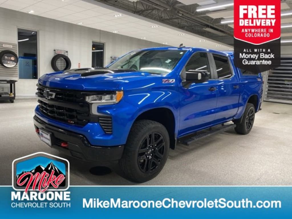 COME SEE THIS BEAUTIFUL 2022 Chevrolet Silverado 1500 LT Trail Boss AT MIKE MAROONE CHEVROLET SOUTH 230 N ACADEMY BLVD COLORADO SPRINGS CO, 3 DAY 150 MILE MONEY BACK GUARANTEE**, FREE DELIVERY ANYWHERE IN COLORADO**, 60 DAY POWERTRAIN WARRANTY**, CERTIFIED 1 OWNER VEHICLE**, CLEAN CARFAX - NO ACCIDENTS REPORTED**, 1 FREE MONTH ONSTAR (IF EQUIPPED)**, 3 FREE MONTHS XM RADIO (IF EQUIPPED)**, 4 WHEEL DRIVE**, 5.3L V8 ENGINE**, 8 COLOR TOUCHSCREEN**, APPLE CARPLAY**, ANDROID AUTO**, AIR CONDITIONING**, ALLOY WHEELS**, BLUETOOTH - HANDS FREE**, BOSE PREMIUM STEREO**, FRESH OIL & FILTER CHANGE**, FRONT & REAR BRAKES**, HEATED SEATS**, LEATHER SEATS**, MP3- USB- AUX PORT**, PASSIVE ENTRY SYSTEM**, KEYLESS OPEN**, KEYLESS START**, KEYLESS ENTRY**, POWER HEATED OUTSIDE MIRRORS**, CRUISE CONTROL**, POWER WINDOWS**, POWER LOCKS**, POWER SEAT**, REAR BACK UP CAMERA**, REAR CROSS TRAFFIC ALERT**, REMOTE VEHICLE START**, RUNNING BOARDS**, SERVICE RECORDS AVAILABLE**, STEERING WHEEL AUDIO CONTROLS**, TOW PACKAGE**, TRAILERING EQUIPMENT**, BEDLINER**. 4WD Certification Program Details: This 2022 Chevrolet Silverado 1500 LT Trail Boss also comes with the FULL Mike Maroone 60-Day warranty. We will review the technician's vehicle inspection report with you before purchase. Our intention is to provide you a completely transparent buying experience. At Mike Maroone our used vehicles are Safety Checked, Warrantied, CARFAX, and if you don't like it ... Bring it back! All of our new and used vehicles come with the Mike Maroone Preferred Owner Advantages listed below: - MARKET BASED PRICING - 3 DAY/150 MILE MONEY BACK GUARANTEE - FREE LOANERS FOR SERVICE GUESTS WHO SET AN ONLINE APPOINTMENT - 12 MONTH/12K MILE SERVICE/COLLISION GUARANTEE - 60 DAY LIMITED POWERTRAIN PRE-OWNED VEHICLE WARRANTY - MILITARY DEPLOYMENT BUYBACK GUARANTEE - FREE DELIVERY ANYWHERE IN COLORADO For more information or vehicles like it, stop by Mike Maroone South today. We are just south of the Citadel Mall on the corner of Academy and Bijou.