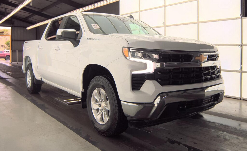 Clean CARFAX. CARFAX One-Owner. FREE DELIVERY ANYWHERE IN COLORADO, Summit White exterior, Jet Black interior, 5.3L EcoTec3 V8 engine, 10-speed automatic transmission, Dynamic Fuel Management, 4WD, Crew Cab configuration, Chevrolet Infotainment 3 system, 13.4-inch diagonal color touchscreen display, wireless Apple CarPlay and Android Auto, Bluetooth audio streaming, SiriusXM capability, OnStar services capable, remote keyless entry, push-button start, remote start, USB ports, 120V power outlet in cargo bed and instrument panel, dual-zone automatic climate control, power windows, 10-way power driver seat, 40/20/40 split front bench seat, rear 60/40 folding bench seat, carpeted flooring, cornerstep rear bumper, cargo bed LED lighting, EZ Lift power lock and release tailgate, heated power-adjustable mirrors, LED reflector headlamps, LED daytime running lamps, front recovery hooks, forward collision alert, automatic emergency braking, front pedestrian braking, lane keep assist with lane departure warning, following distance indicator, IntelliBeam auto high beams, rear vision camera, hill start assist, stabilitrak stability control, trailer sway control, autotrac transfer case, heavy-duty air filter, Work Truck package, all-weather floor liners, convenience package, all-star edition, 17-inch bright silver painted aluminum wheels. Summit White 2023 Chevrolet Silverado 1500 LT LT1 4D Crew Cab EcoTec3 5.3L V8 10-Speed Automatic 4WD