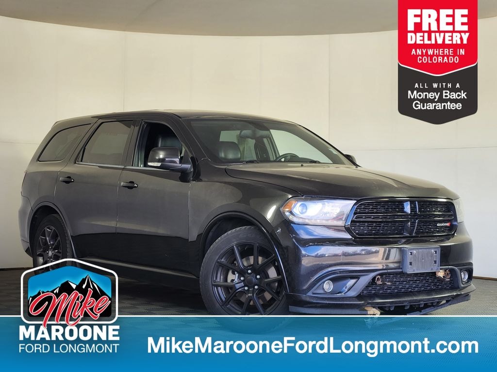 FREE DELIVERY ANYWHERE IN COLORADO, Black exterior, R/T trim, 5.7L HEMI V8 engine, 8-speed automatic transmission, rear-wheel drive, sport-tuned suspension, dual rear exhaust with bright tips, trailer tow group IV, Class IV receiver hitch, 7 and 4 pin wiring harness, heavy-duty engine cooling, full-size spare tire, leather-trimmed bucket seats, heated front seats, power driver seat, power sunroof, Uconnect 8.4 touchscreen infotainment system, Bluetooth connectivity, integrated voice command, GPS antenna, SiriusXM capability, remote keyless entry with push-button start, dual-zone automatic climate control, rear air conditioning, steering wheel mounted audio controls, 20-inch aluminum wheels. Brilliant Black Crystal Pearlcoat 2015 Dodge Durango R/T 4D Sport Utility HEMI 5.7L V8 Multi Displacement VVT 8-Speed Automatic AWD