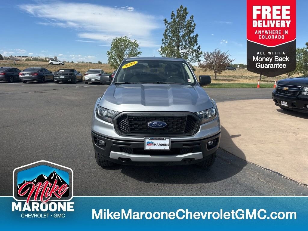 Clean CARFAX. CARFAX One-Owner. Silver Metallic 2020 Ford Ranger XLT 4WD 10-Speed Automatic EcoBoost 2.3L I4 GTDi DOHC Turbocharged VCT FREE DELIVERY ANYWHERE IN COLORADO, 4 WHEEL DRIVE, RUNNING BOARDS, TOW HITCH, LOCAL TRADE IN, COME TEST DRIVE!, SET YOUR TEST DRIVE APPOINTMENT TODAY, 4WD.