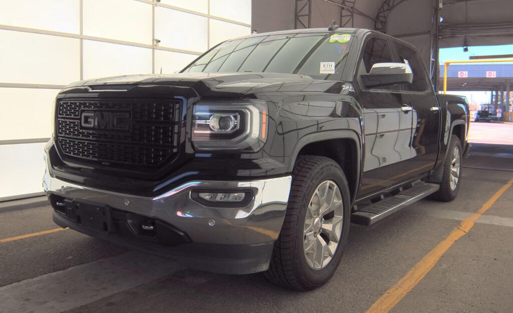 FREE DELIVERY ANYWHERE IN COLORADO, Onyx Black exterior, Jet Black interior, 6.2L V8 engine, 8-speed automatic transmission, 4WD, SLT trim, Crew Cab configuration, leather-appointed seating, heated front seats, power driver and passenger seats, driver memory settings, dual-zone automatic climate control, remote start, keyless entry with push-button start, GMC IntelliLink infotainment system, touchscreen display, Apple CarPlay and Android Auto, Bluetooth audio streaming, premium audio system, rear vision camera, rear park assist, trailering package, trailer brake controller, integrated trailer hitch, locking rear differential, hill descent control, LED signature lighting, HID headlamps, fog lamps, chrome grille, chrome bumpers, chrome mirror caps, power-adjustable heated mirrors, spray-in bedliner, EZ lift and lower tailgate, cornerstep rear bumper, 18-inch or 20-inch aluminum wheels, all-terrain tires. Onyx Black 2018 GMC Sierra 1500 SLT 4D Crew Cab EcoTec3 6.2L V8 8-Speed Automatic with Overdrive 4WD