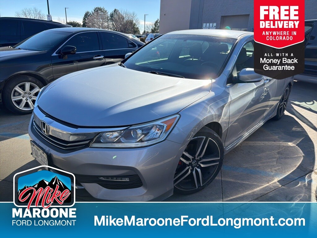 Recent Arrival! FREE DELIVERY ANYWHERE IN COLORADO, Front-Wheel Drive, Sport Trim, 2.4L DOHC i-VTEC 4-Cylinder Engine, CVT Automatic Transmission with Sport Mode, 19" Alloy Wheels, Sport-Tuned Suspension, Dual Exhaust with Chrome Tips, LED Daytime Running Lights, Fog Lights, Rear Spoiler, Remote Keyless Entry, Push Button Start, Power Windows and Door Locks, Power Side Mirrors, Front Bucket Seats, Cloth Sport Seats, Drivers Seat with Height Adjustment, Tilt and Telescoping Steering Wheel, Leather-Wrapped Steering Wheel, Cruise Control, Dual-Zone Automatic Climate Control, Rear Seat A/C Vents, Fold-Down Rear Seats, 160-Watt AM/FM/CD Audio System, Bluetooth Hands-Free Connectivity, USB Audio Interface, Multi-Angle Rearview Camera, Steering Wheel Audio Controls, Vehicle Stability Assist, Traction Control, Anti-Lock Braking System, Electronic Brake Distribution, Tire Pressure Monitoring System, Front and Side Airbags, Side Curtain Airbags, LATCH Child Safety System, This 2016 Honda Accord Sport blends sporty styling with legendary Honda reliability and everyday comfort. Powered by a fuel-efficient 2.4L engine and equipped with a sport-tuned suspension and 19-inch alloy wheels, it delivers a fun yet practical driving experience. With Bluetooth connectivity, push button start, a backup camera, and a spacious interior, this Accord is an excellent choice for commuters and first-time buyers alike.. Odometer is 4826 miles below market average! Silver 2016 Honda Accord Sport 4D Sedan 2.4L I4 DOHC i-VTEC 16V CVT FWD