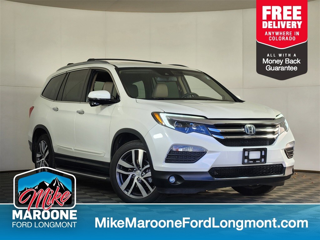 FREE DELIVERY ANYWHERE IN COLORADO, BLUE CERTIFIED, ALL WHEEL DRIVE, NAVIGATION, BLUETOOTH/HANDS FREE, REAR BACKUP CAMERA, White Diamond Pearl, Ultra Low Emission Vehicle (ULEV-2), 3.5L V6 24-Valve SOHC i-VTEC Engine, 9-Speed Automatic Transmission, 4.334 Axle Ratio, 5,842 lbs GVWR, P245/50R20 102H AS Tires, 20" Alloy Wheels, Heated Front Bucket Seats, Leather-Trimmed Seats, AM/FM Premium Audio System, Honda Satellite-Linked Navigation System, SiriusXM Radio, Beige Interior.. Priced below KBB Fair Purchase Price! Odometer is 29122 miles below market average! White Diamond Pearl 2016 Honda Pilot Touring 4D Sport Utility 3.5L V6 24V SOHC i-VTEC 9-Speed Automatic AWD