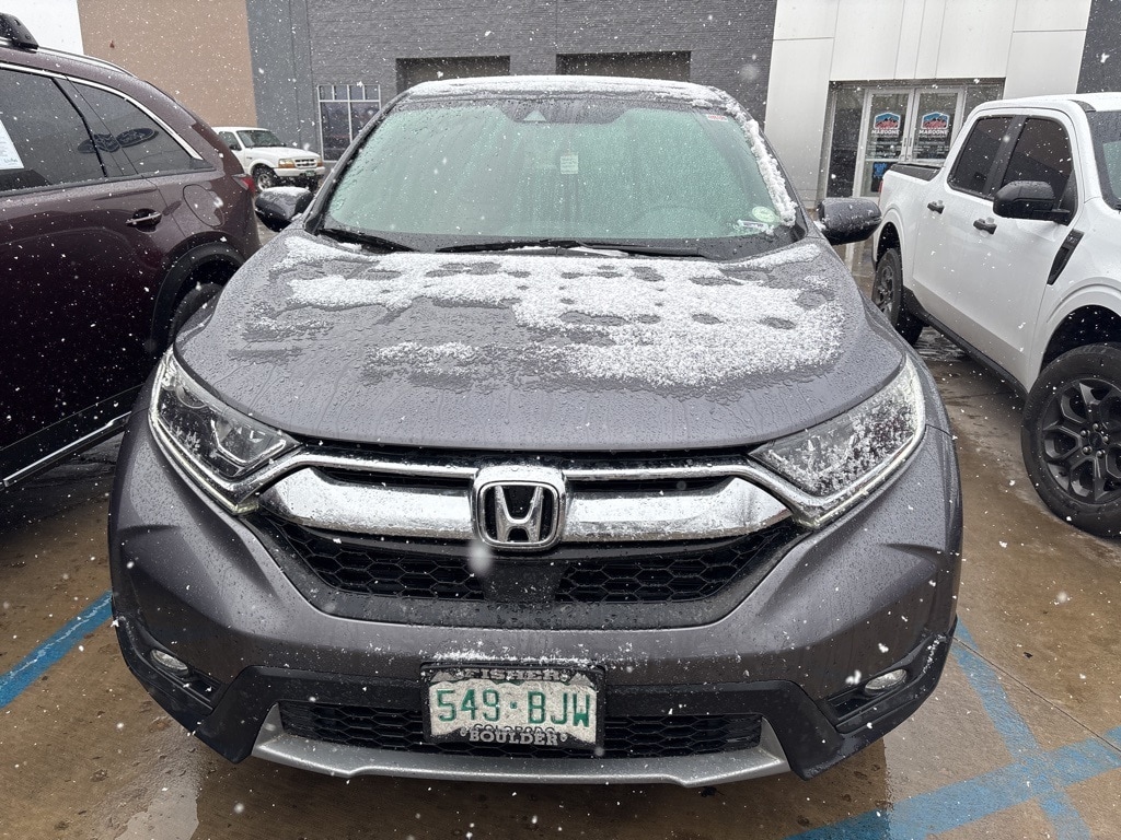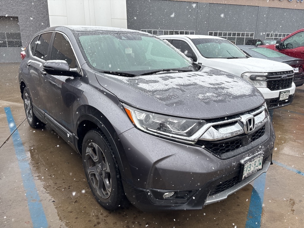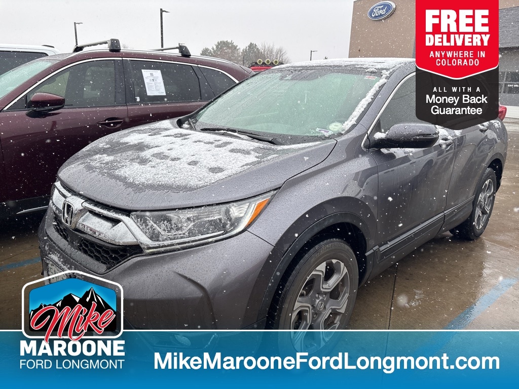 Recent Arrival! CARFAX One-Owner. FREE DELIVERY ANYWHERE IN COLORADO, Front-Wheel Drive, EX Trim, 1.5L Turbocharged 4-Cylinder Engine, Continuously Variable Transmission (CVT) with Sport Mode, Eco Assist System, 18" Alloy Wheels, LED Daytime Running Lights, Power Moonroof, Remote Engine Start, Smart Entry with Push Button Start, Heated Front Seats, Power Driver Seat, Dual-Zone Automatic Climate Control, Rear Seat A/C Vents, 7" Display Audio Touchscreen, Apple CarPlay, Android Auto, Bluetooth Hands-Free Connectivity, 6-Speaker Audio System, USB Ports, Multi-Angle Rearview Camera, Honda Sensing Safety Suite (Collision Mitigation Braking System, Road Departure Mitigation, Adaptive Cruise Control, Lane Keeping Assist, Forward Collision Warning, Lane Departure Warning), Blind Spot Monitoring, Rear Cross Traffic Alert, Vehicle Stability Assist, Traction Control, Anti-Lock Braking System, Electronic Brake Distribution, Tire Pressure Monitoring System, Front and Side Airbags, Side Curtain Airbags, LATCH Child Safety System, 60/40 Split Folding Rear Seats, Power Windows and Door Locks, Power Side Mirrors, Roofline Rear Spoiler, This 2019 Honda CR-V EX delivers excellent fuel efficiency, modern technology, and top-tier safety in a versatile compact SUV. Powered by a turbocharged 1.5L engine and equipped with Honda Sensing driver-assist features, it provides a confident and comfortable driving experience. With heated seats, a power moonroof, Apple CarPlay, Android Auto, and remote start, this CR-V is an ideal choice for daily commuting, road trips, and family use.. Odometer is 23996 miles below market average! Gray 2019 Honda CR-V EX 4D Sport Utility 1.5L I4 DOHC 16V CVT AWD