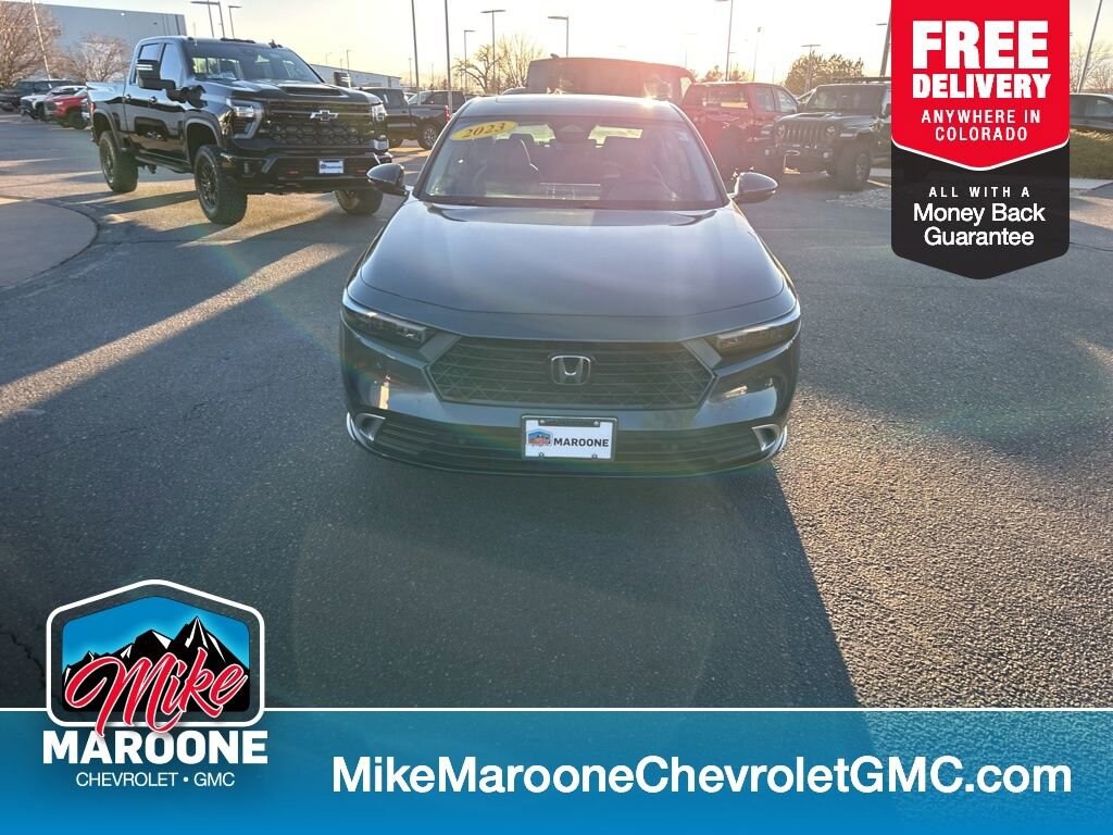 CARFAX One-Owner. Gray 2023 Honda Accord Hybrid Touring FWD eCVT 2.0L 16V DOHC FREE DELIVERY ANYWHERE IN COLORADO, LOCAL TRADE IN, COME TEST DRIVE!, SET YOUR TEST DRIVE APPOINTMENT TODAY, 2.0L 16V DOHC.Proudly serving Longmont, Boulder, Denver, Loveland, Erie, Fort Collins, Thornton, Westminster, Lakewood, Broomfield, Golden, Brighton, and Greeley. Odometer is 19583 miles below market average! 46/41 City/Highway MPG