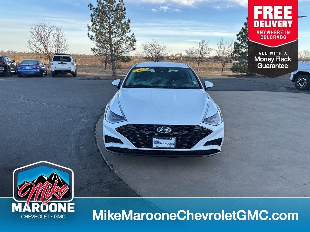Clean CARFAX. Serenity White 2023 Hyundai Sonata SEL FWD 8-Speed Automatic with SHIFTRONIC 2.5L I4 FREE DELIVERY ANYWHERE IN COLORADO, NAVIGATION, LANE DEPARTURE, PRICED TO SELL!!!, COME TEST DRIVE!, SET YOUR TEST DRIVE APPOINTMENT TODAY, This vehicle is being offered for sale without full cosmetic or mechanical reconditioning, which is, Black Cloth.