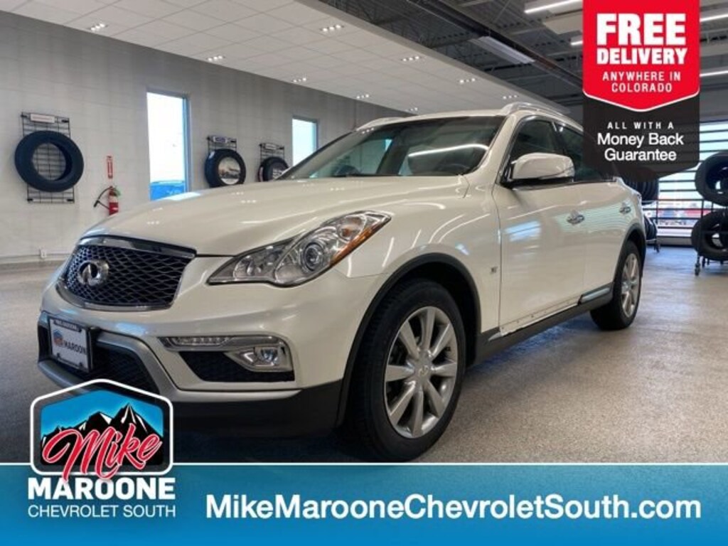 COME SEE THIS BEAUTIFUL 2017 INFINITI QX50 AT MIKE MAROONE CHEVROLET SOUTH 230 N ACADEMY BLVD COLORADO SPRINGS CO, 3 DAY 150 MILE MONEY BACK GUARANTEE**, FREE DELIVERY ANYWHERE IN COLORADO**, 60 DAY POWERTRAIN WARRANTY**, AIR CONDITIONING**, ALLOY WHEELS**, BOSE PREMIUM STEREO**, FRESH OIL & FILTER CHANGE**, HEATED SEATS**, CRUISE CONTROL**, POWER WINDOWS**, POWER LOCKS**, POWER SEAT**. RWD Certification Program Details: This 2017 INFINITI QX50 also comes with the FULL Mike Maroone 60-Day warranty. We will review the technician's vehicle inspection report with you before purchase. Our intention is to provide you a completely transparent buying experience. At Mike Maroone our used vehicles are Safety Checked, Warrantied, CARFAX, and if you don't like it ... Bring it back! All of our new and used vehicles come with the Mike Maroone Preferred Owner Advantages listed below: - MARKET BASED PRICING - 3 DAY/150 MILE MONEY BACK GUARANTEE - FREE LOANERS FOR SERVICE GUESTS WHO SET AN ONLINE APPOINTMENT - 12 MONTH/12K MILE SERVICE/COLLISION GUARANTEE - 60 DAY LIMITED POWERTRAIN PRE-OWNED VEHICLE WARRANTY - MILITARY DEPLOYMENT BUYBACK GUARANTEE - FREE DELIVERY ANYWHERE IN COLORADO For more information or vehicles like it, stop by Mike Maroone South today. We are just south of the Citadel Mall on the corner of Academy and Bijou.