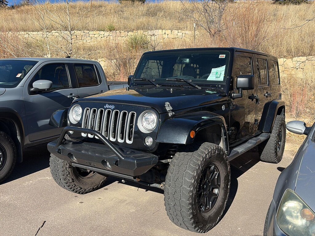 This 2017 Jeep Wrangler Unlimited Sahara, has a Black Clearcoat exterior and Dark Saddle/Black interior color with only 77,280 miles. Stock Number N560484. You can connect with us by calling (719) 249-2703. No Accidents! OTHER NOTABLE FEATURES AND OPTIONS YOU SHOULD KNOW ABOUT: Quick Order Package 23GBody Color Appliques Front BumperBody Color Appliques Rear BumperBody Color/accent Color GrilleQuick Order Package 24GBody Color Appliques Front BumperBody Color Appliques Rear BumperBody Color/accent Color GrilleTrailer Tow Group ($495 value)Class II Receiver HitchTrailer Tow with 4-Pin Connector Wiring Comfort Heated driver and front passenger seat cushions - Thats hot. Heated driver and front passenger seat cushions provide more targeted warmth so you can get comfortable quicker in cold weather. If you have lower body pain, you might also be soothed by the heat while you drive. No matter the weather, find comfort in heated driver and front passenger seat cushions. Leather seat upholstery - superior sitting. Theres more class in the cabin with leather seat upholstery. The leather material is luxurious to the touch, offers a distinctive look, and is easy to clean. Put a little luxury behind you with leather seat upholstery.Exterior and Appearance First-row sunroof - Let more of the outside in. Now you can be in the sun or gaze at the stars from the comfort of your seat, and have a more open cabin during your drive. Your first-row sunroof is a breath of fresh air.Technology and Telematics Integrated navigation system - A to B made easy! Whether it's an errand or a road trip, an integrated navigation system will guide you to your destination. No more bulky, impossible-to-fold maps, and no more stopping to ask for directions. With integrated navigation system you always know the right way. Wireless connectivity - Strike the cord. Wireless technology makes it easy to place calls without having to fumble with your phone. It integrates your device with the system inside your vehicle for hands-free access. Keep connected and keep your hands on the wheel with wireless connectivity. ENGINE: 3.6L V6 24V VVT, TRANSMISSION: 5-SPEED AUTOMATIC (W5A580), QUICK ORDER PACKAGE 24G, 3.21 REAR AXLE RATIO, WHEELS: 18" X 7.5" 7-SPOKE POLISHED ALUMINUM, BLACK CLEARCOAT, DARK SADDLE/BLACK, LEATHER TRIMMED BUCKET SEATS, TRAILER TOW GROUP, BODY COLOR 3-PIECE HARD TOP, JEEP TRAIL RATED KIT, RADIO: 430 NAV, HEATED FRONT SEATS, AIR CONDITIONING W/AUTO TEMP CONTROL, MANUFACTURER'S STATEMENT OF ORIGIN At Mike Maroone Chevrolet North, were here to Serve you! Our staff is 100% dedicated to customer satisfaction and we understand that you need clear, transparent information throughout the car buying process. With our live market pricing philosophy, we offer the right cars at the right price, and the transparency to back it up! FINANCING OPTIONS: Take advantage of our attractive low-rate financing options. Our access to various Credit Unions and National Banks can provide financing for most credit levels. We can tailor a finance package to fit your needs. To get started, complete our secure online credit application. We will review our technicians vehicle inspection report with you before purchase. Our intention is to provide you a completely transparent buying experience. At Mike Maroone our used vehicles are Safety Checked, Warrantied, CarFax, and if you dont like it ... Bring it back! For more information or vehicles like it, stop by Mike Maroone North today. We are just north of the Chapel Hills mall behind Walmart in the Chapel Hills Auto Mall.
