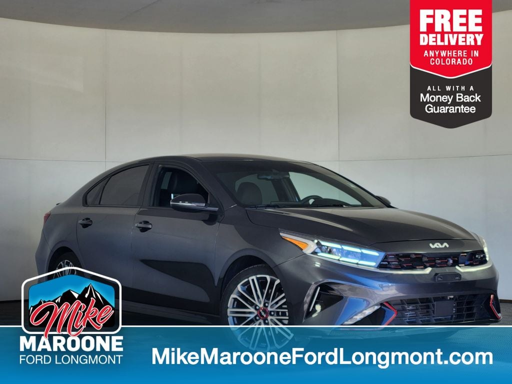 Clean CARFAX. CARFAX One-Owner. FREE DELIVERY ANYWHERE IN COLORADO, 2023 Kia Forte GT-Line Auto, 2.0L Multi-Point Fuel Injection 4-Cylinder Engine, Intelligent Variable Automatic Transmission (IVT), Gravity Gray Exterior, Black Interior, Drive Mode Select, 17-Inch Sport Alloy Wheels, GT-Line Sport Side Sills, Rear Spoiler, LED Fog Lights, LED Tail Lights and DRLs, Auto On/Off Projector Headlights, Heated Outside Mirrors with LED Turn Signals, 10.25-Inch Touchscreen with Navigation and Kia Connect, Apple CarPlay and Android Auto, Rear View Camera with Dynamic Guidelines, USB/Media Ports and 12V Outlet, Smart Key with Push Button Start and Remote Start, Dual Automatic Climate Control, Multi-Adjustable Manual Front Seats, GT-Line Sport Cloth and SynTex Seating Material, Leather-Wrapped Steering Wheel with Paddle Shifters, Forward Collision Avoidance Assist with Pedestrian and Cyclist Detection, Blind-Spot Collision Avoidance Assist, Rear Cross-Traffic Collision Avoidance Assist, Lane Keeping Assist and Lane Following Assist, Driver Attention Warning, High Beam Assist, Dual Front and Side Curtain Airbags, Electronic Stability Control, Hill-Start Assist Control, Tire Pressure Monitoring System, Electronic Parking Brake, Smart Cruise Control with Stop & Go, Combined 30 MPG (27 City / 35 Highway), Total MSRP $25,515.00. Gravity Gray 2023 Kia Forte GT 4D Sedan 1.6L I4 Turbo 7-Speed Automatic FWD