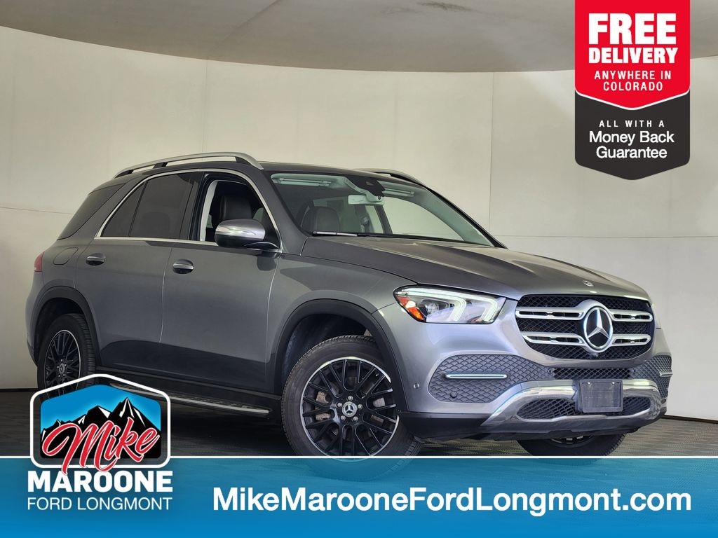 Clean CARFAX. FREE DELIVERY ANYWHERE IN COLORADO, GLE 350 4MATIC AWD, 2.0L turbocharged 4-cylinder engine, 9-speed automatic transmission, Selenite Grey Metallic exterior, Espresso Brown MB-Tex interior, Premium 1 Package, Parking Assist Package, Burmester surround sound system, 64-color ambient interior lighting, blind spot assist, active lane keeping assist, collision prevention assist plus, parking pilot with active parking assist, surround view camera system, navigation system with augmented video, Apple CarPlay and Android Auto, Bluetooth connectivity, SiriusXM capability, NFC wireless charging, dual-zone automatic climate control, power front seats with memory, heated front seats, power tilt/sliding sunroof, LED headlights and daytime running lights, power liftgate, keyless entry with push-button start, HANDS-FREE ACCESS, power folding mirrors, rain-sensing windshield wipers, aluminum running boards, trailer hitch with increased towing capacity, 19-inch black multi-spoke alloy wheels, cargo cover, interior wood trim, advanced voice control system, garage door opener, cruise control, steering wheel-mounted controls, multiple USB ports, MB navigation services, emergency call system. 2020 Mercedes-Benz GLE GLE 350 4MATIC® 4D Sport Utility 2.0L I4 Turbocharged 9-Speed Automatic 4MATIC®