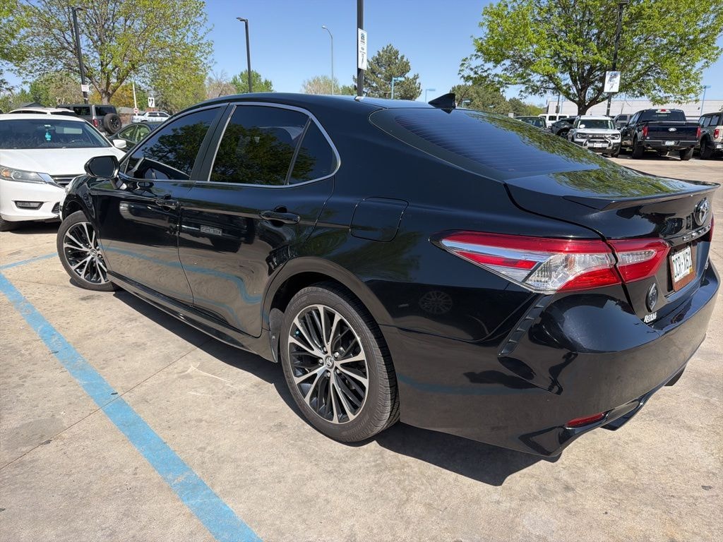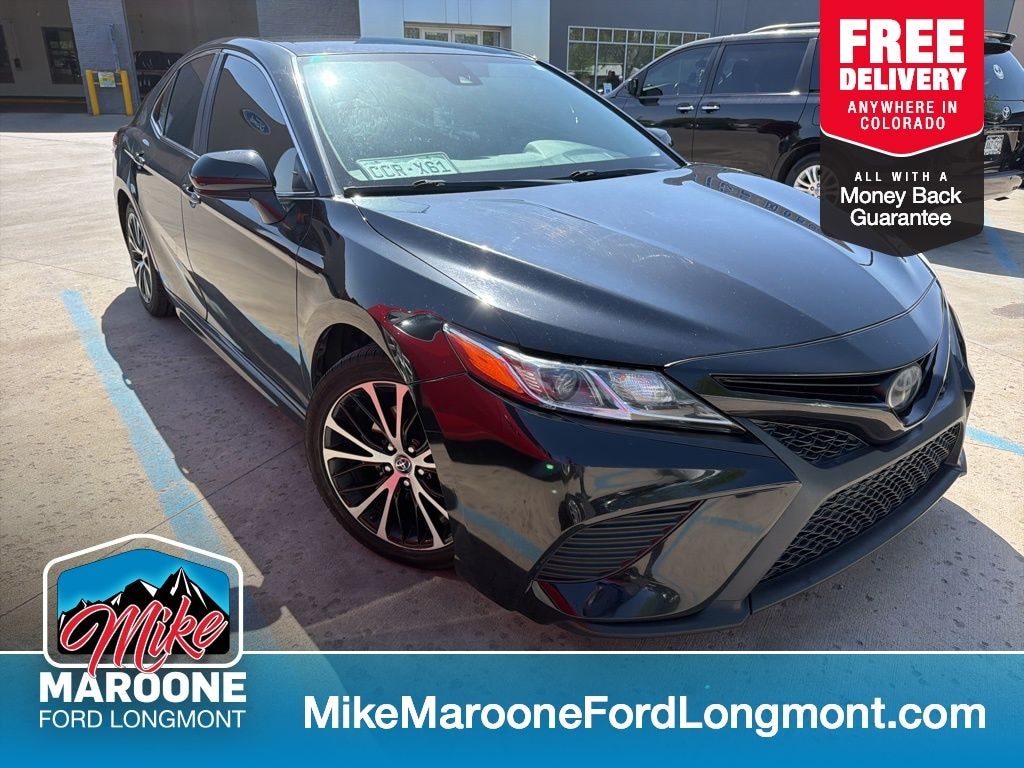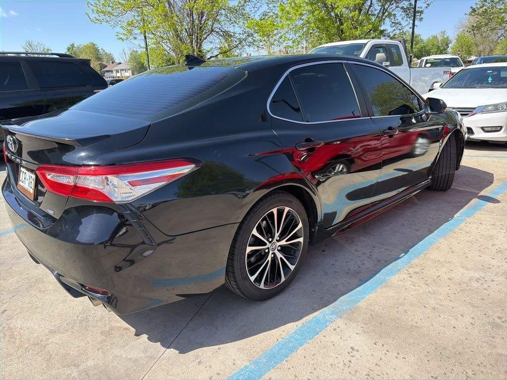 FREE DELIVERY ANYWHERE IN COLORADO, SE trim, 2.5L Dynamic Force 4-cylinder engine, 8-speed automatic transmission, front-wheel drive, Midnight Black Metallic exterior, black SofTex interior, 18-inch black machined-finish alloy wheels, sport-tuned suspension, rear spoiler, dual exhaust with chrome tips, LED headlights with daytime running lights, LED taillights, color-keyed heated power outside mirrors, remote keyless entry, push-button start, dual-zone automatic climate control, 8-way power driver seat with lumbar support, sport fabric/SofTex-trimmed seats, leather-trimmed steering wheel with paddle shifters, steering wheel-mounted controls, 7-inch multi-information display, backup camera with projected path, smart key system, power windows and locks, cruise control, Dynamic Radar Cruise Control (DRCC), lane departure alert with steering assist, lane tracing assist, automatic high beams, pre-collision system with pedestrian detection, blind spot monitor with rear cross-traffic alert, tire pressure monitoring system, Apple CarPlay, Android Auto, Amazon Alexa compatibility, Bluetooth connectivity, USB ports, Wi-Fi Connect capability, 6-speaker audio system, Toyota Safety Sense P (TSS-P), LATCH system, rear seat air vents, 60/40 split-folding rear seats. 2020 Toyota Camry 4D Sedan 2.5L I4 DOHC 16V 8-Speed Automatic FWD