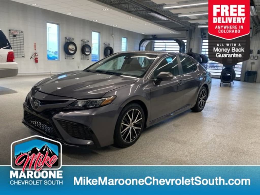 COME SEE THIS BEAUTIFUL 2022 Toyota Camry SE AT MIKE MAROONE CHEVROLET SOUTH 230 N ACADEMY BLVD COLORADO SPRINGS CO, 3 DAY 150 MILE MONEY BACK GUARANTEE**, FREE DELIVERY ANYWHERE IN COLORADO**, 60 DAY POWERTRAIN WARRANTY**, 3 FREE MONTHS XM RADIO (IF EQUIPPED)**, 8 COLOR TOUCHSCREEN**, APPLE CARPLAY**, ANDROID AUTO**, AIR CONDITIONING**, ALLOY WHEELS**, BLUETOOTH - HANDS FREE**, FRESH OIL & FILTER CHANGE**, FRONT & REAR BRAKES**, MP3- USB- AUX PORT**, PASSIVE ENTRY SYSTEM**, KEYLESS OPEN**, KEYLESS START**, KEYLESS ENTRY**, POWER HEATED OUTSIDE MIRRORS**, CRUISE CONTROL**, POWER WINDOWS**, POWER LOCKS**, POWER SEAT**, REAR BACK UP CAMERA**, REAR CROSS TRAFFIC ALERT**, SERVICE RECORDS AVAILABLE**, STEERING WHEEL AUDIO CONTROLS**. FWD Certification Program Details: This 2022 Toyota Camry SE also comes with the FULL Mike Maroone 60-Day warranty. We will review the technician's vehicle inspection report with you before purchase. Our intention is to provide you a completely transparent buying experience. At Mike Maroone our used vehicles are Safety Checked, Warrantied, CARFAX, and if you don't like it ... Bring it back! All of our new and used vehicles come with the Mike Maroone Preferred Owner Advantages listed below: - MARKET BASED PRICING - 3 DAY/150 MILE MONEY BACK GUARANTEE - FREE LOANERS FOR SERVICE GUESTS WHO SET AN ONLINE APPOINTMENT - 12 MONTH/12K MILE SERVICE/COLLISION GUARANTEE - 60 DAY LIMITED POWERTRAIN PRE-OWNED VEHICLE WARRANTY - MILITARY DEPLOYMENT BUYBACK GUARANTEE - FREE DELIVERY ANYWHERE IN COLORADO For more information or vehicles like it, stop by Mike Maroone South today. We are just south of the Citadel Mall on the corner of Academy and Bijou.